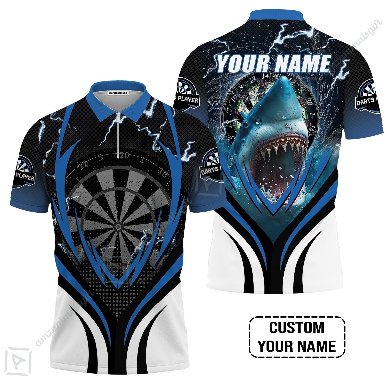 Shark And Darts Custom Name Hawaiian Shirt, Bullseye Dartboard Personalized Hawaiian Shirt
