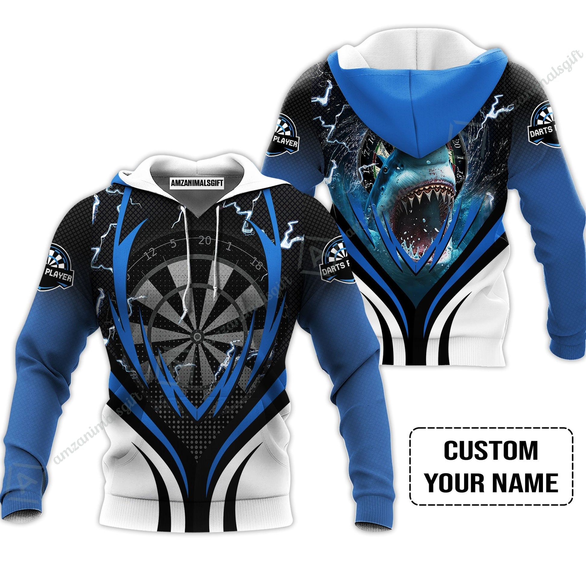 Shark And Darts Custom Name Zip Polo Shirt, Bullseye Dartboard Personalized Zip Polo Shirt
