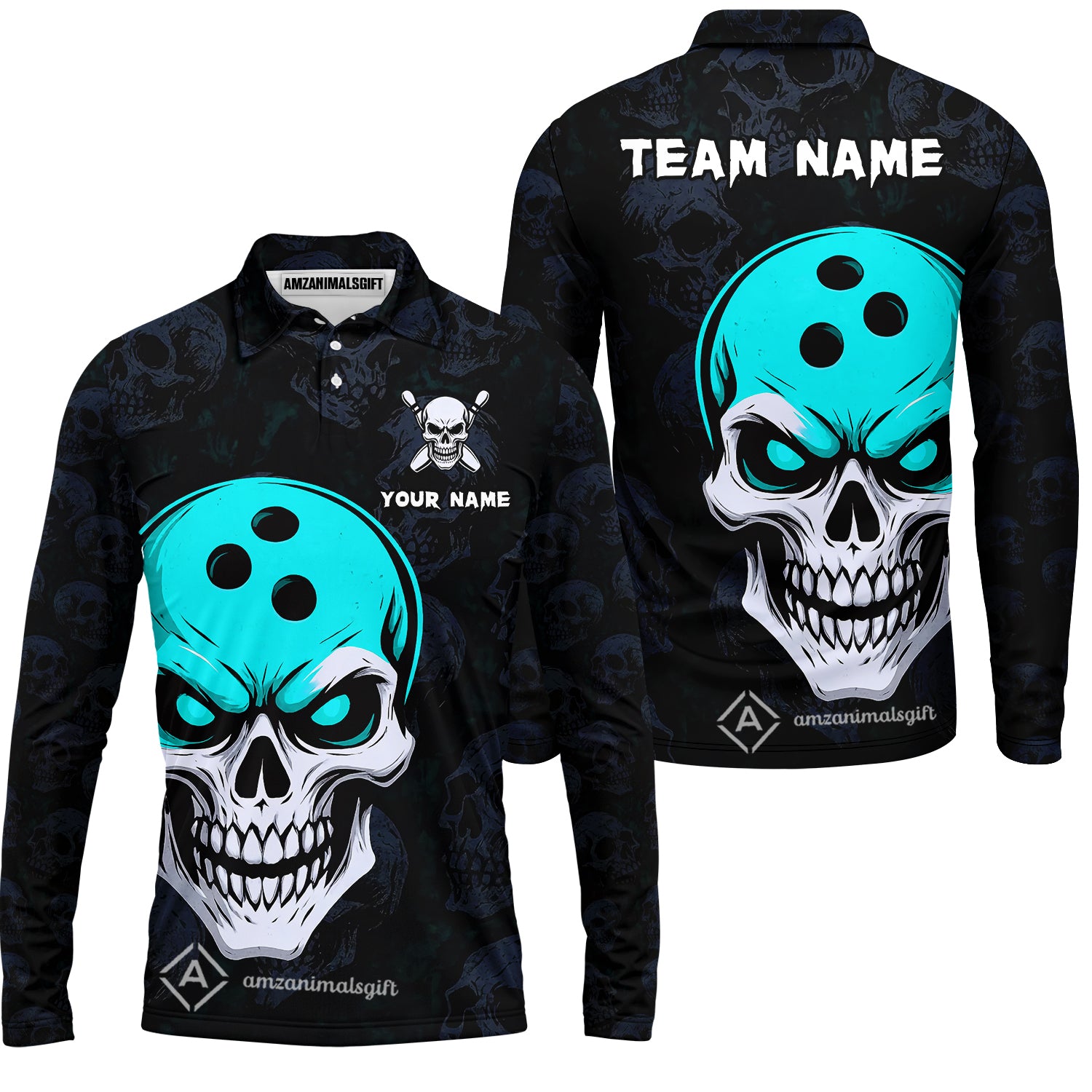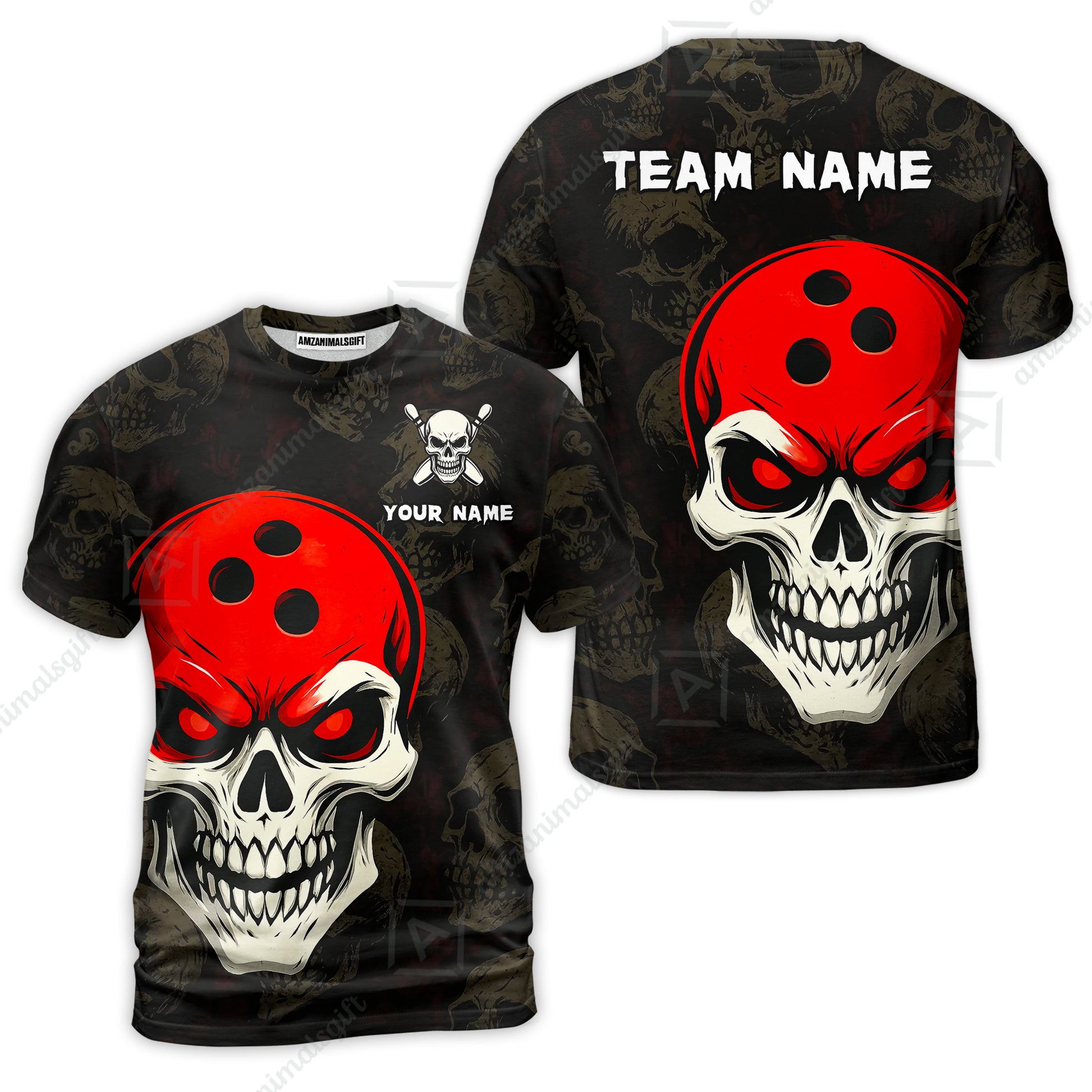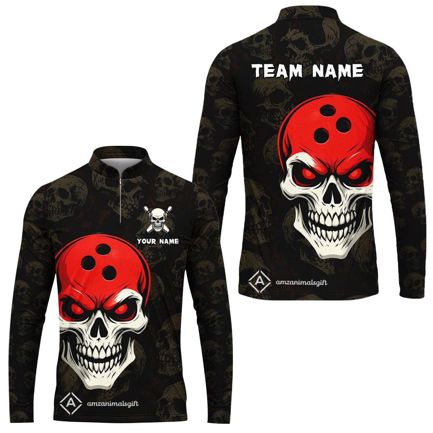 Custom Bowling Team Uniform Jersey Skull Bowling Shirt with Gothic Style, Bowling uniforms, Personalized Name And Team Name