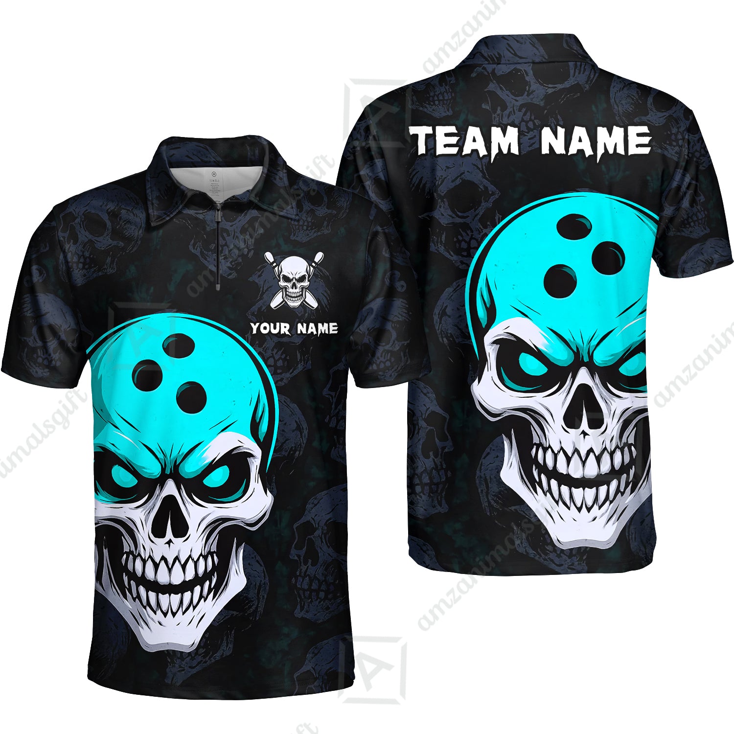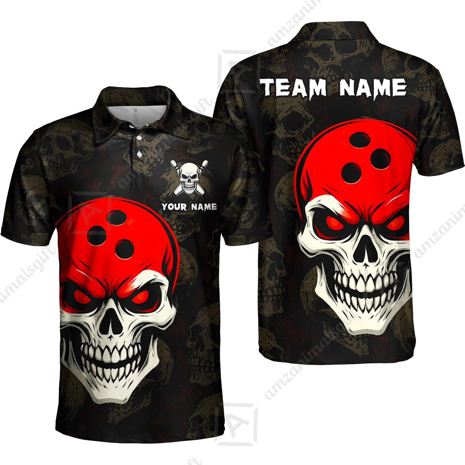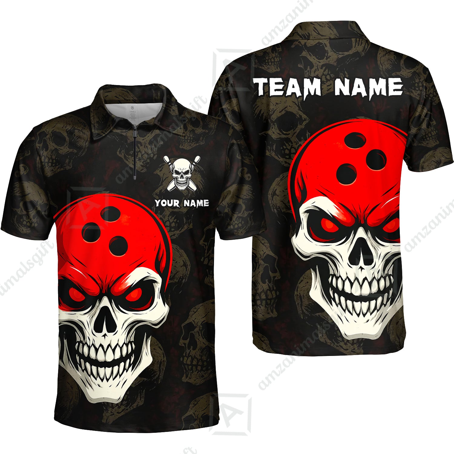 Custom Bowling Team Uniform Jersey Skull Bowling Shirt with Gothic Style, Bowling uniforms, Personalized Name And Team Name