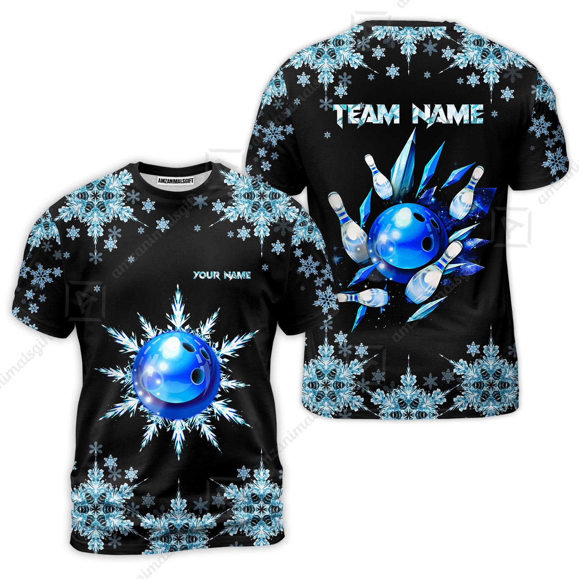 Snowflake Ice Custom Bowling Team Jerseys Polo Shirts, Christmas Ice Bowling uniforms - Bowling Polo Personalized Name And Team Name