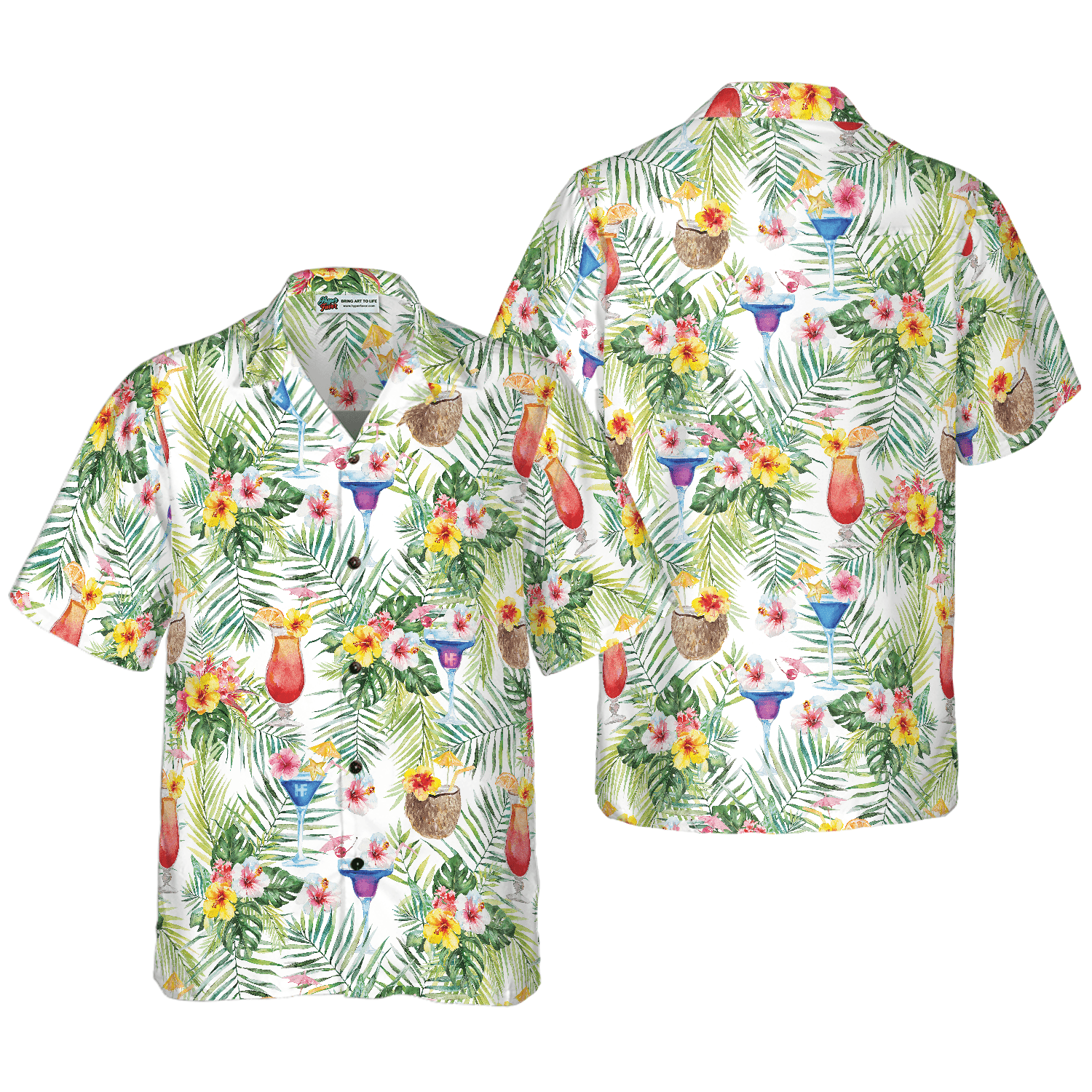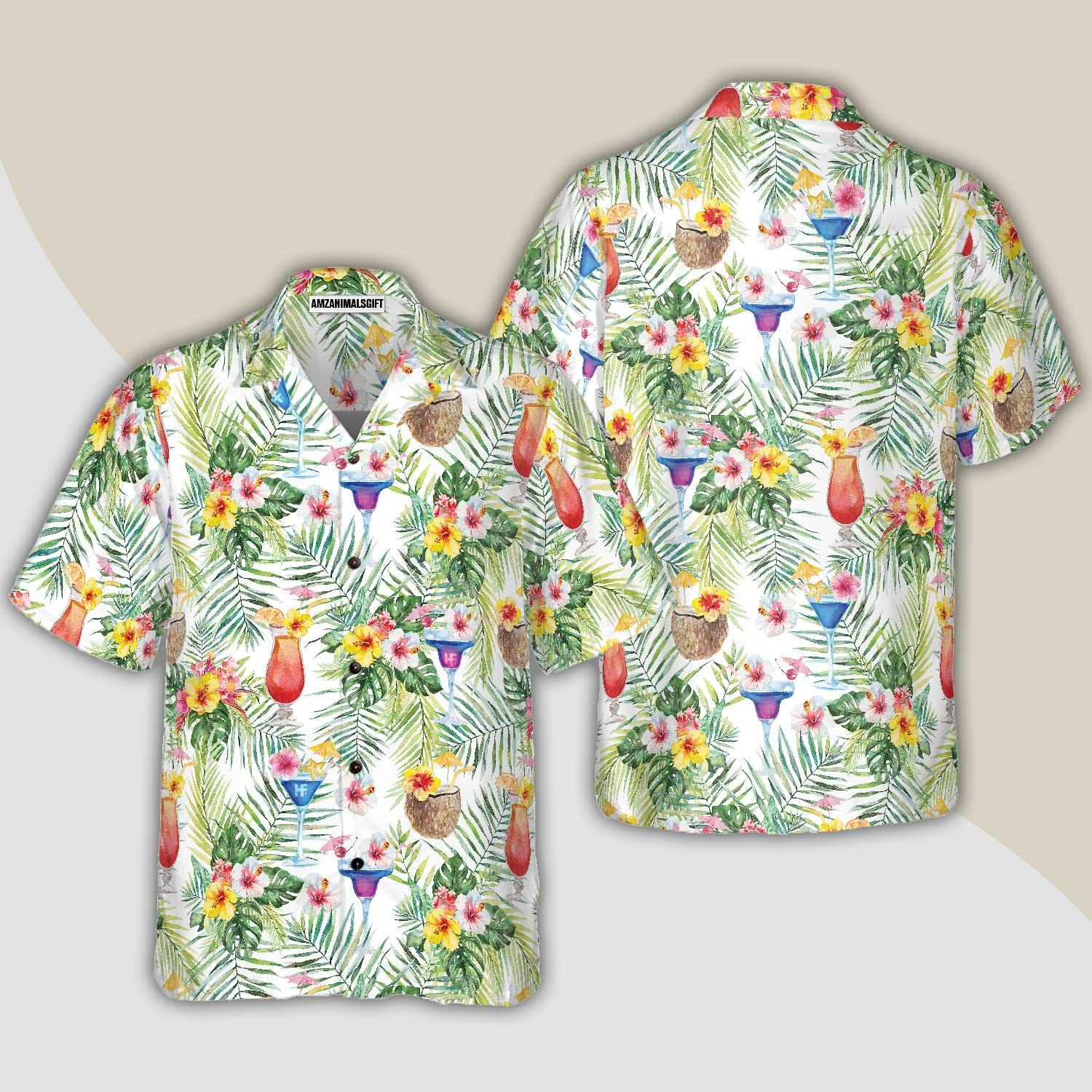 Tropical Cocktail Hawaiian Shirt, Colorful Summer Aloha Shirt For Men Women, Perfect Gift For Friend, Team