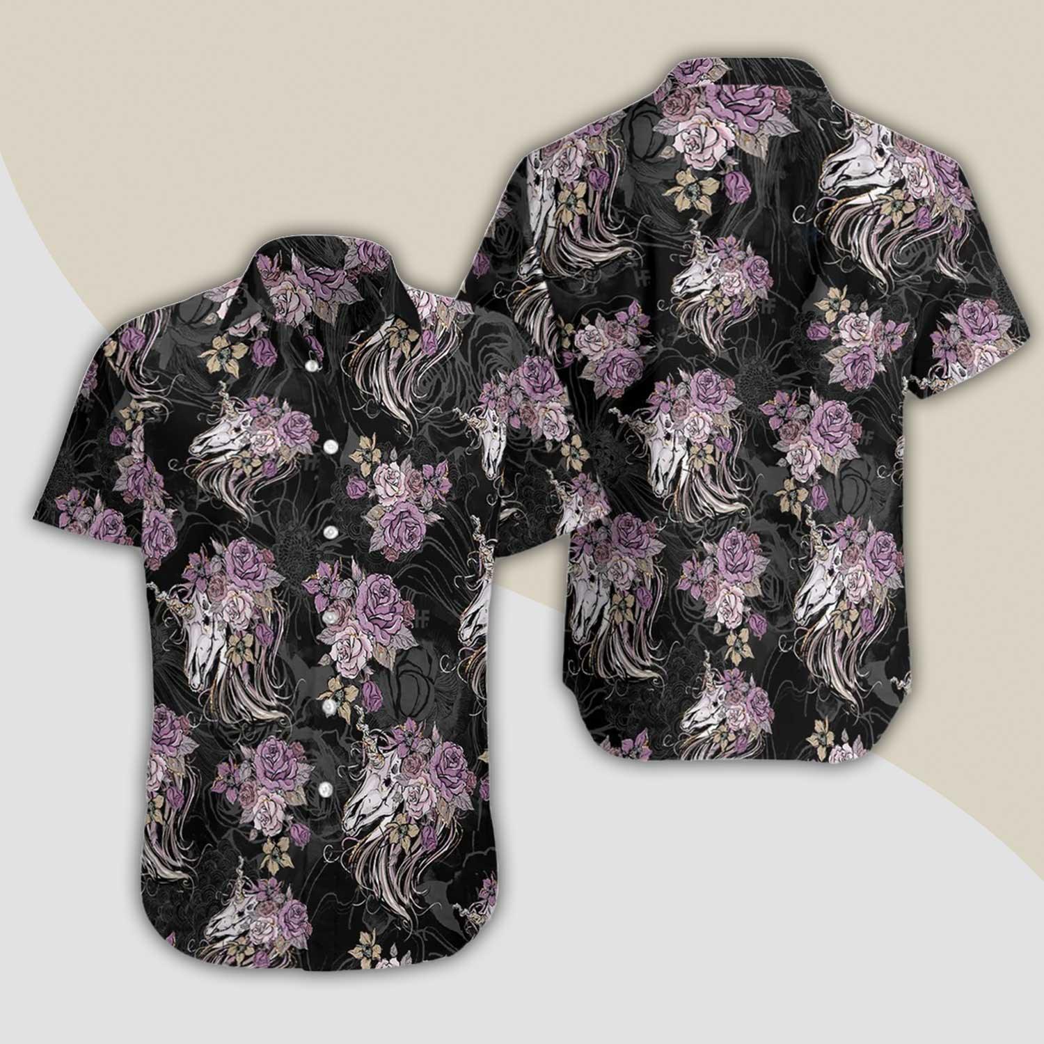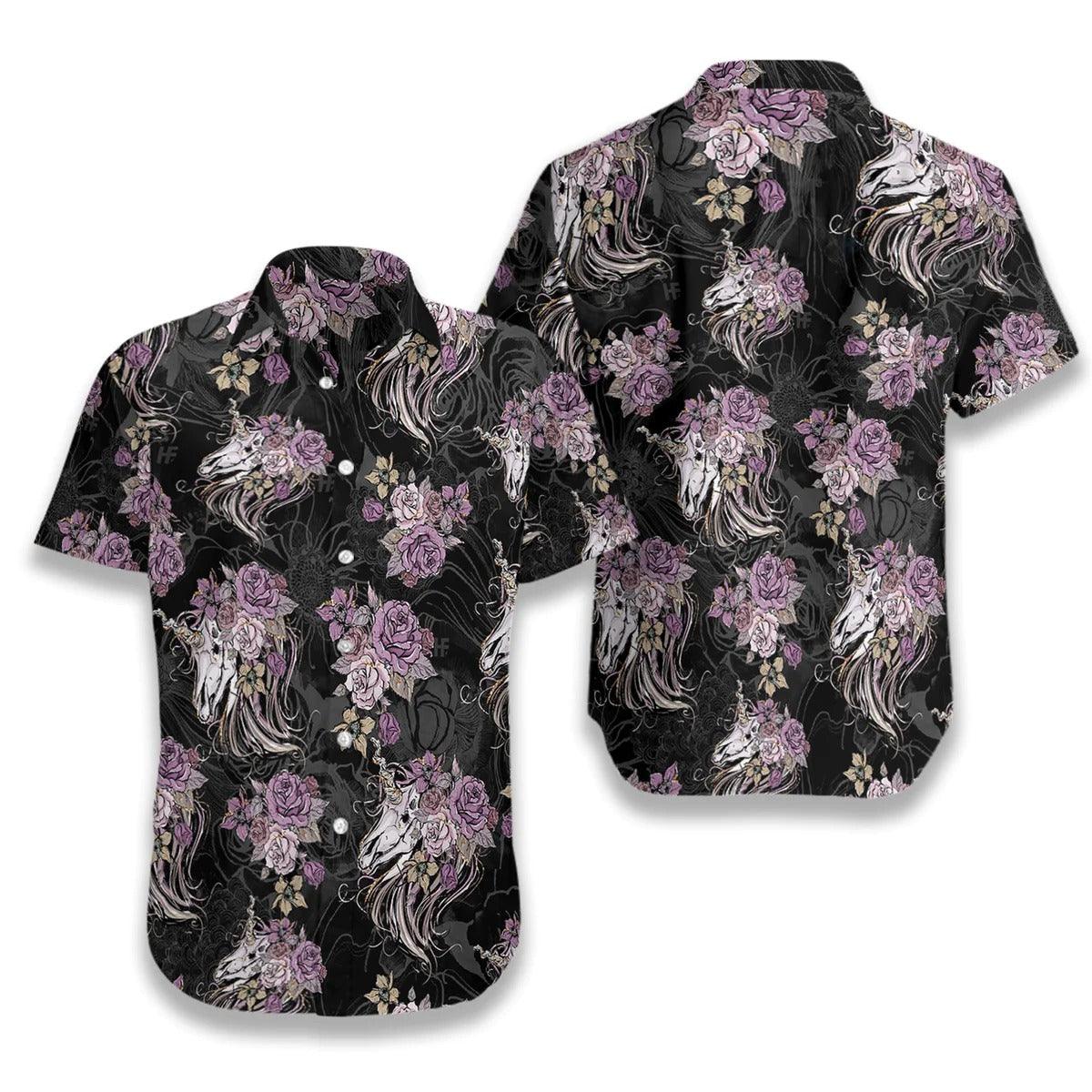 Unicorn Skull Flowers Hawaiian Shirt, Unicorn Skull Aloha Shirt, Flowers Hawaiian Shirt - Perfect Gift For Men Women, Friends, Family