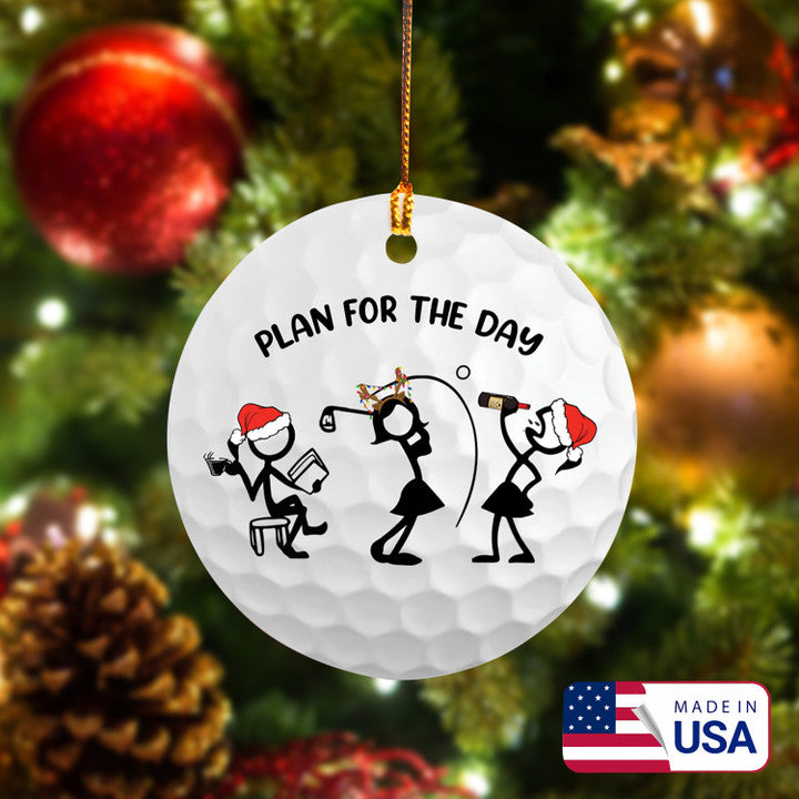Wine Women Circle Ceramic Ornament Stick Man, Plan For The Day Ceramic Stick Ornament - Best Gift For Golf Lovers, Christmas