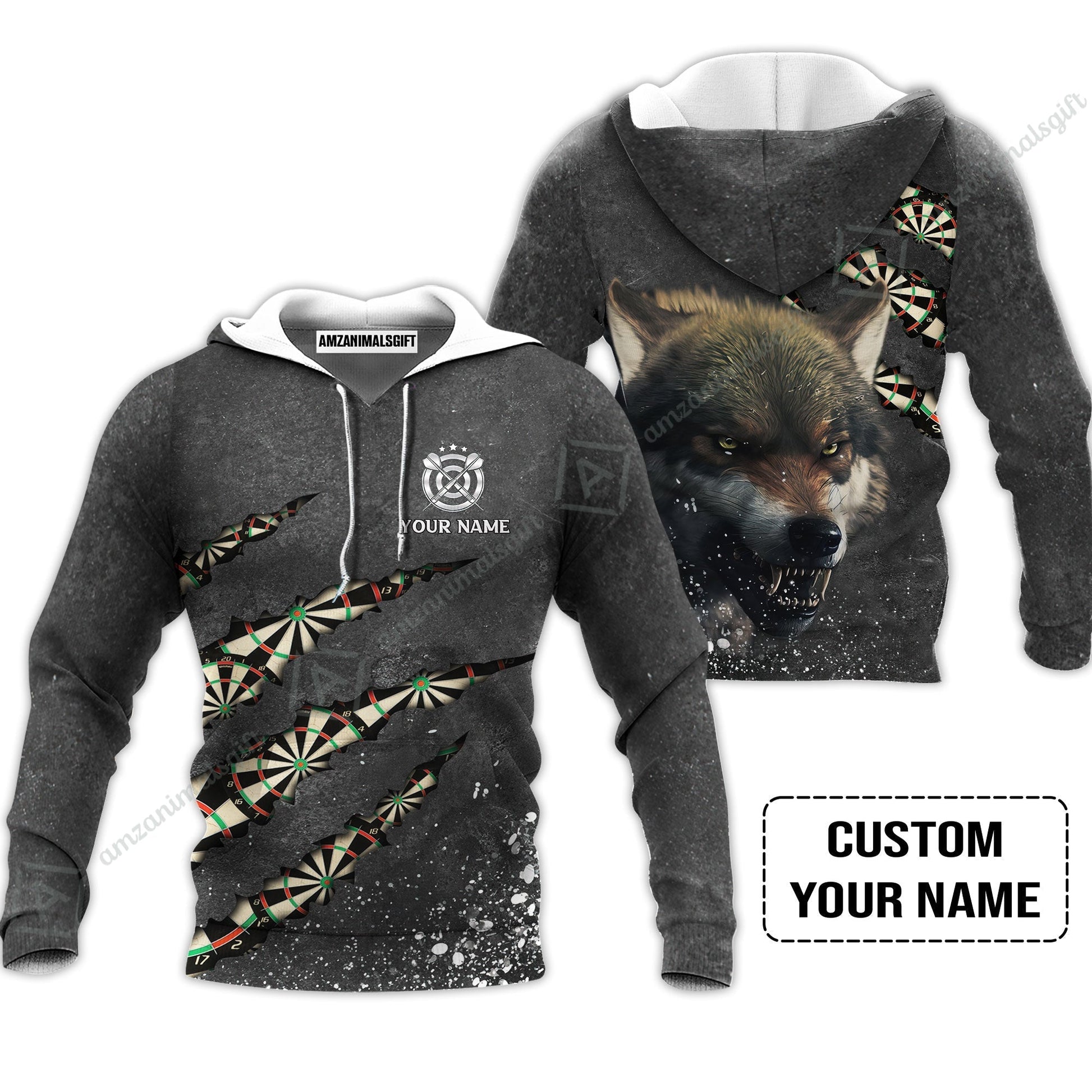 Wolf And Darts Custom Name Hoodie, Darts Paint Splash Personalized Hoodie
