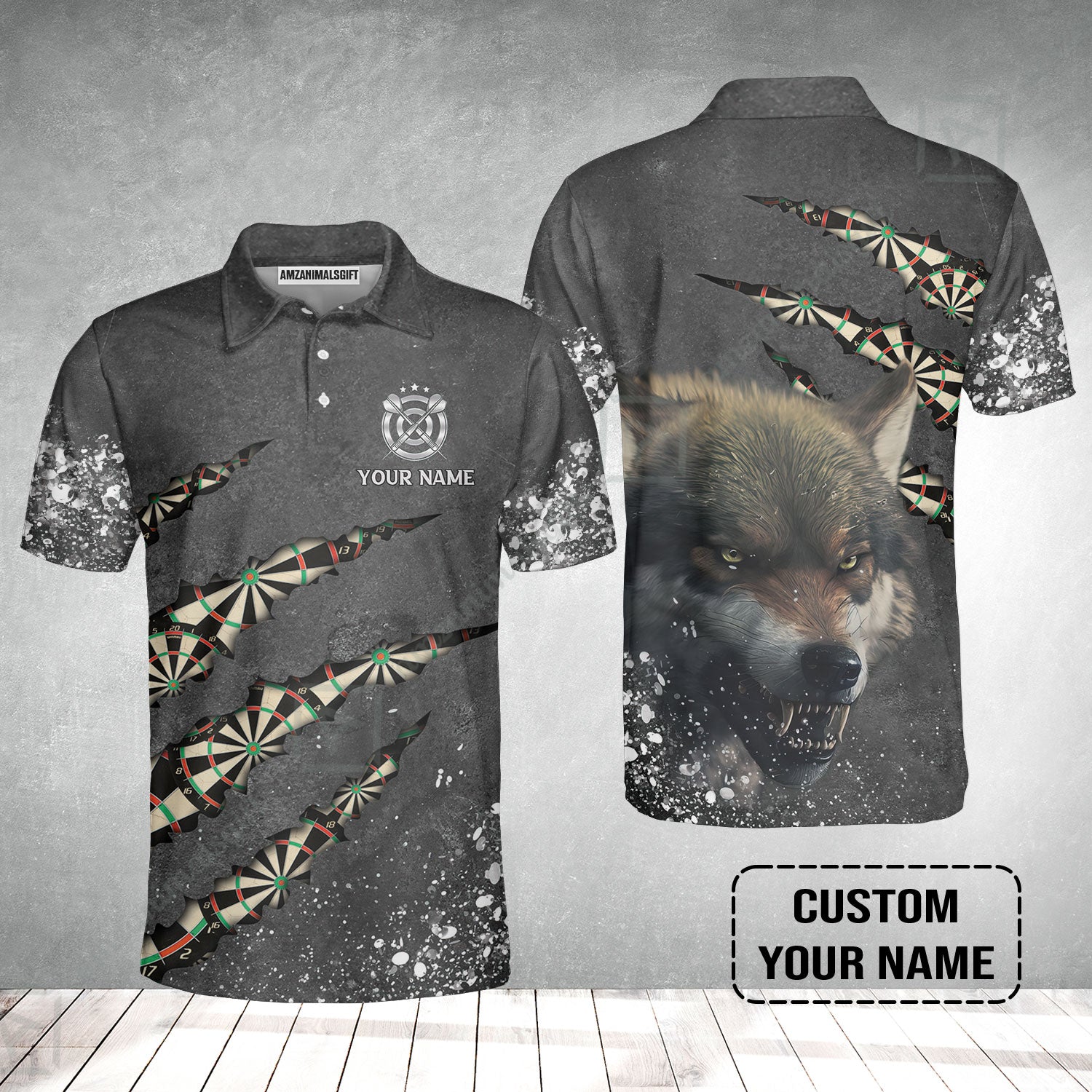 Wolf And Darts Custom Name Men Polo Shirt, Darts Paint Splash Personalized Men Polo Shirt