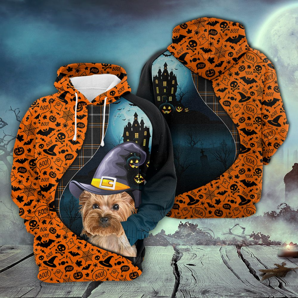 Yorkshire Terrier And Halloween Pullover Premium Hoodie, Perfect Outfit For Men And Women On Christmas New Year Autumn Winter